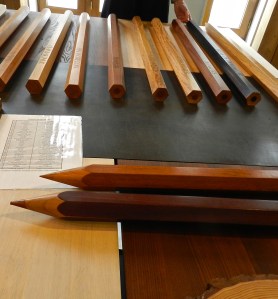 Photos: de très très grands crayons, taillés dans des arbres de diverses essences et exposées à Nantes. Il y a de quoi écrire, et la matière ne fait pas défaut…