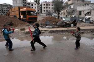 This photo was taken by Abdulmonam Eassa on January 25 2018 in the Eastern Ghouta region, near Damascus in Syria.