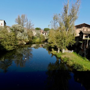 Debout sur le vieux pont de pierre hier. Deux canards, culs en l’air, fouillent sous la berge. Un rat d’eau nage dans leur direction, son sillage traçant un V qui va en s’élargissant.
