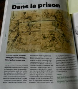 The photo is published in the 5th edition of Cahiers de la BD. It is not of the best quality but it gives you some idea of the prisoners’ living conditions. If you want to know more about doing artwork against all odds, you can always consult the English version of the Zehra Dogan dossier on Kedistan.