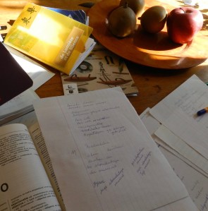 A musician friend requests a short text in Russian for a song she must record soon. We listen to the rythm together – 4-6, 4-6, 4-6, 4-4-6 – and so on. I fall asleep on this and wake up with a first draft. Since my mastery of Russian verb conjugations is inept at best, I try to stick to infinitives and verbs in the first person singular of the present tense…Luckily, it’s a short text…