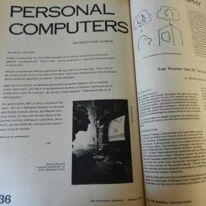 C’était en 1975. Si ce numéro du Co-Evolution Quarterly m’accompagne encore suite à près de 50 ans de trans-bahutage, ça n’est pas à cause de cet article sur les ordinateurs personnels – il s’agissait d’une telle nouveauté à l’époque qu’on expliquait dans la revue…comment fabriquer le sien. C’est aussi l’année où un certain Bill Gates fondait avec un copain une petite boîte du nom de Micro-Soft.