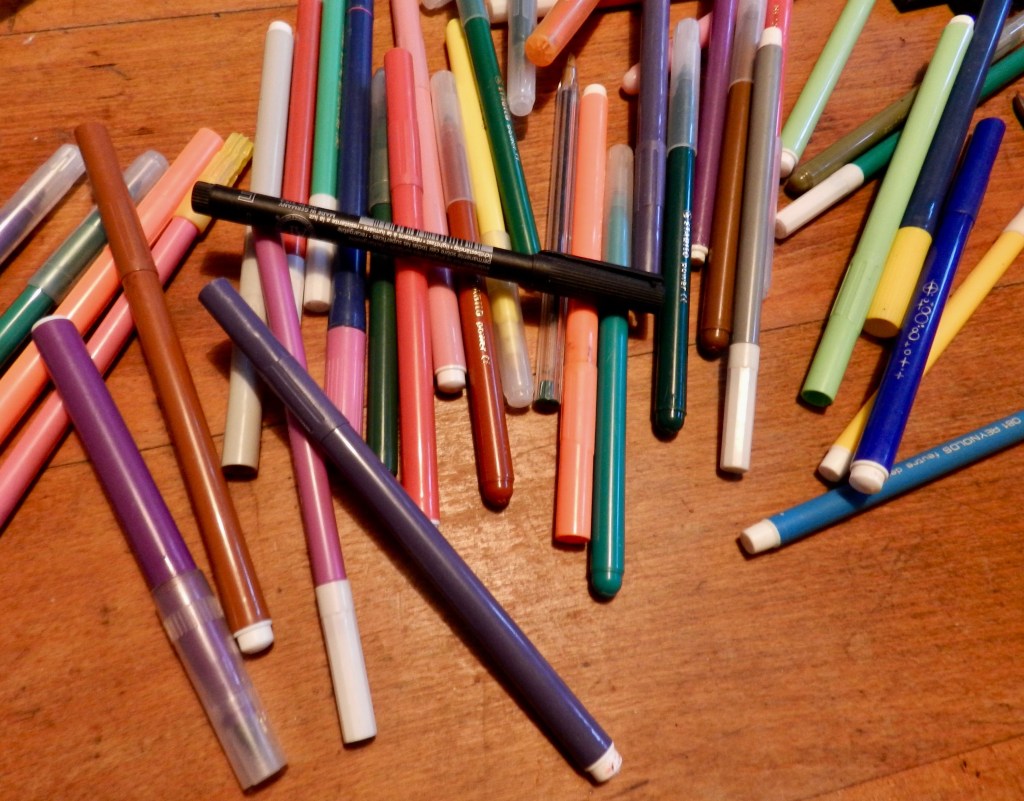 Je ne possède pas un jeu de jonchets (qu’on appelle aussi Mikado). Mais les feutres en illustration serviront pour les besoins de la cause.