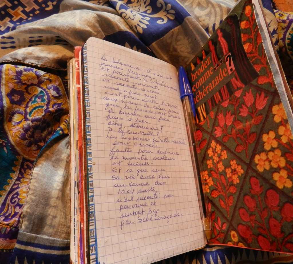 La blessure – Il n’en est jamais question. Et pourtant. Si Schéhérazade raconte raconte et raconte encore, nuit après nuit, c’est pour éviter la mort aux mains de celui pour qui les femmes sont bonnes à baiser de force une fois, puis à tuer, allez, débarrasse ! à la suivante ! Les histoires qu’elle raconte sont atroces, faites pour distraire le monstre violeur et tueur et de le laisser à ronfler au petit matin.