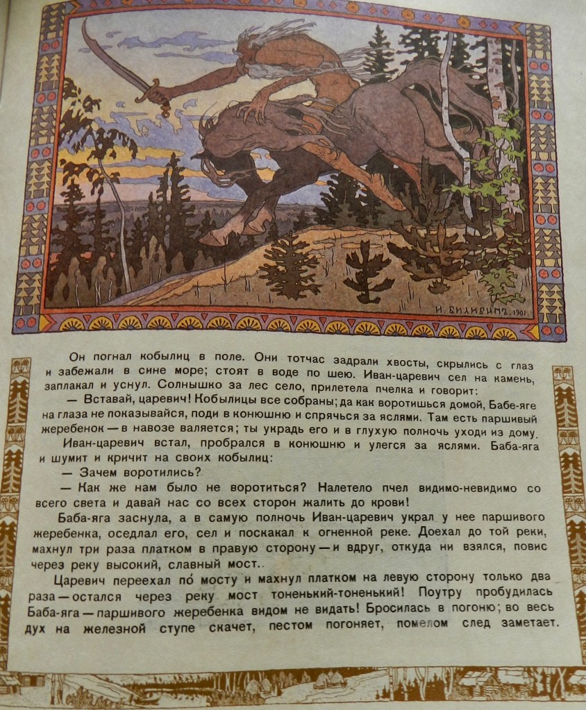 (Illustration : extrait du conte russe Maria Morevna dans une édition illustrée par Ivan Bilibin, éditions Terra, Moscou 1992)