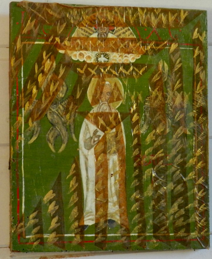illustration : tout comme les conversations en question, on peut interpréter cette version d’une icône que j’ai peinte un jour, il y a fort longtemps, comme représentant des langues de feu venues du Saint-Esprit/des missiles et/ou des drones/ des ‘points de presse” contradictoires ou toute autre chose, au choix.