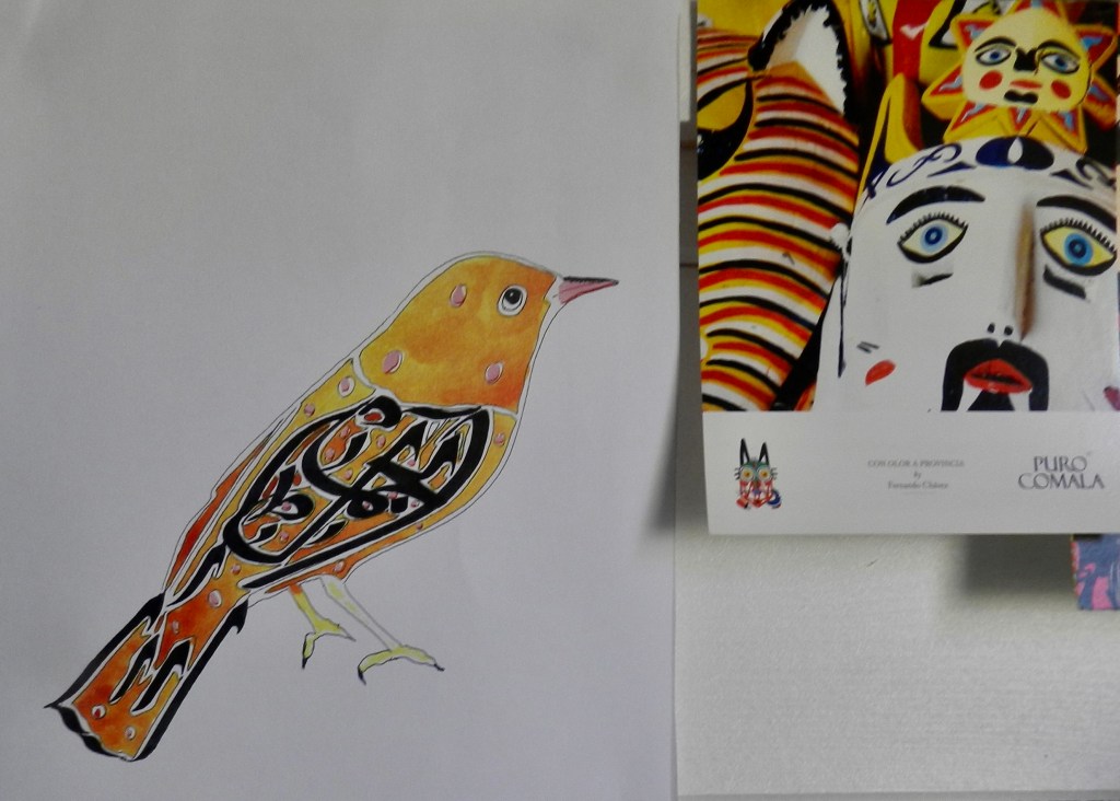 While the main character in a story ponders on that strange business known as a “love relationship” – a notion that strikes her as odd as the conjunction illustrated above between a bird and an assortment of masks.