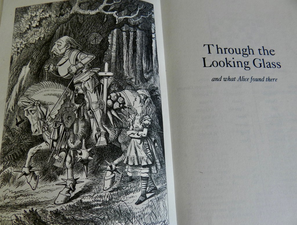 Of Lewis Carrol’s work in France, I believe Alice in Wonderland is the better known. In this other adventure, Alice moves through the looking glass and discover a world in which everything is inverted: you must run in order to stay in place, move away from a destination in order to get closer to it, and discussions are about a present tense that hasn’t occurred yet. Moreover, everything, absolutely everything is ruled by the immutable logic of a game of chess, an inexorable and inhuman logic based on the principle that there can be only one winner.