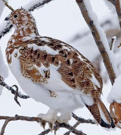All right, so without the photo. What would the eye have captured at the sight of this being, camoudlaged as a snowy surface in a tree in which brown, spotted leaves still cling to the branches. The experience would occur during a winter walk in a woodland where dead leaves would still hand from some trees and where the eye in its wandering, would first be fooled by what it sees, before distinguishing the shape of the bird and separating it from the space in which it is hiding. The observation and surprise in the awareness of a mimicry beyond understanding. The impression of a mystery expressed by bhis bird, the mystery accompanying the sound and sensation of the wanderer’s boots crushing the snow under his feet.