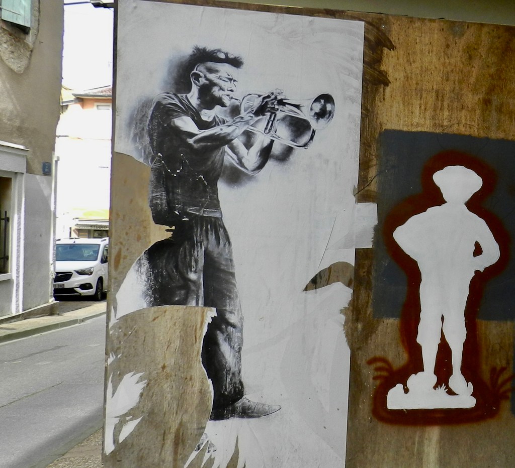The illustration above: at the entrance to the town’s decrepit medieval quarter, all that is left of a billboard representing Piero, a trumpet playing friend who died of a fulminating cancer, just as his musical group was starting to achieve significant recognition. As some are now having fun with tearing it down, I figured I had better grab what’s left while it’s still there.