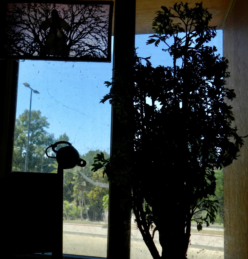 Révisions ? J’y retourne justement. (À la vue de l’illustration ci-haut, je note que mes fenêtres profiteraient bien d’un petite nettoyage…La sculpture en profil représente un ange fabriqué avec de vieux morceaux de quincaillerie; il a des ailes en petit catéchisme et attend l’arrivée de renforts célestes…Que dire, si ce n’est que l’espérance est violente selon les mots d’Apollinaire)