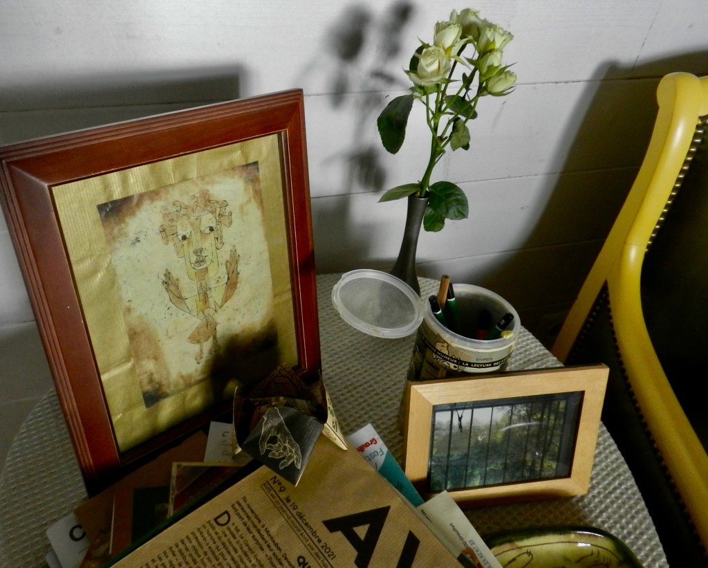 Rien à ajouter, ce matin. Je me suis réveillée sur l’air et les paroles d’un chant de mon enfance où, braves petites endoctrinées que nous étions, nous nous engagions ‘sur notre honneur’ à “payer hommage” au Seigneur. (Mais l’Ange du Futur de Paul Klee me parle davantage, ces jours-ci.)
