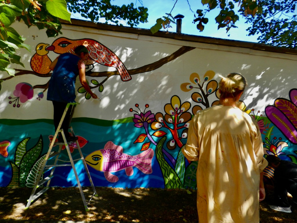 Un mur aveugle au bout d’un parc près des HLM = des heures rémunérées pour une artiste locale grâce à des subventions obtenues, et la mise en place par l’association Volubilo et…
