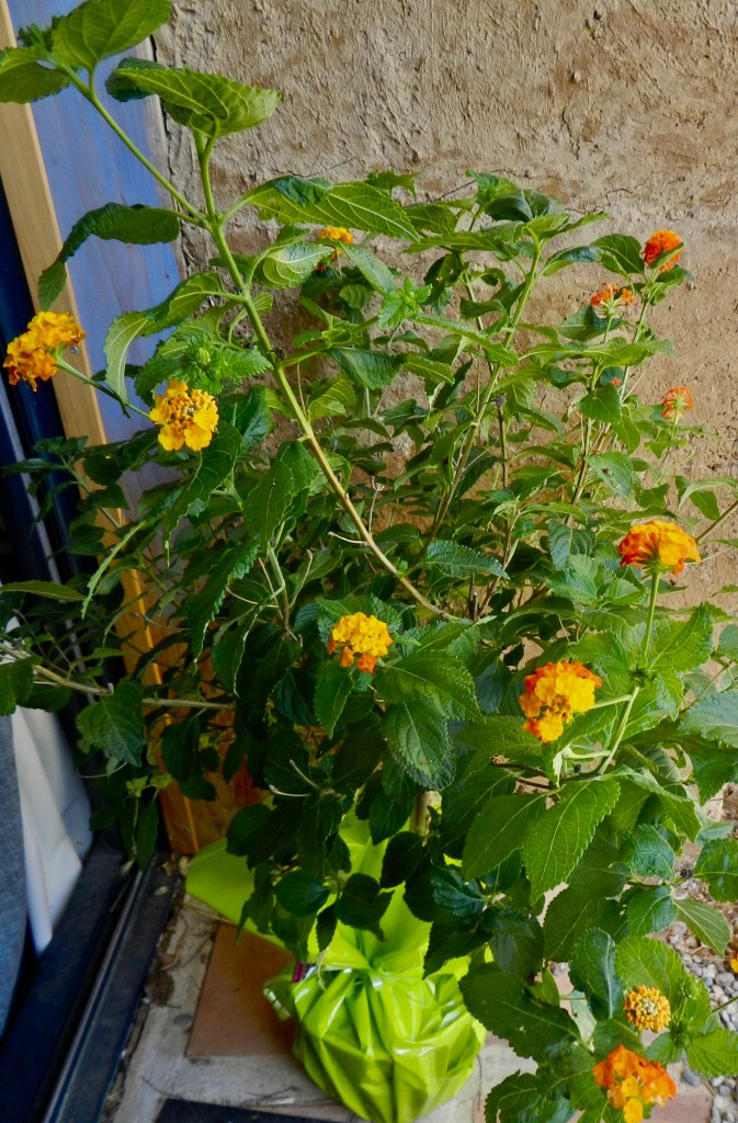 En l’effleurant, je découvre que les feuilles du lantana dégagent un léger parfum de verveine. La plante appartient à la famille des verbennacées, précise la notice.
