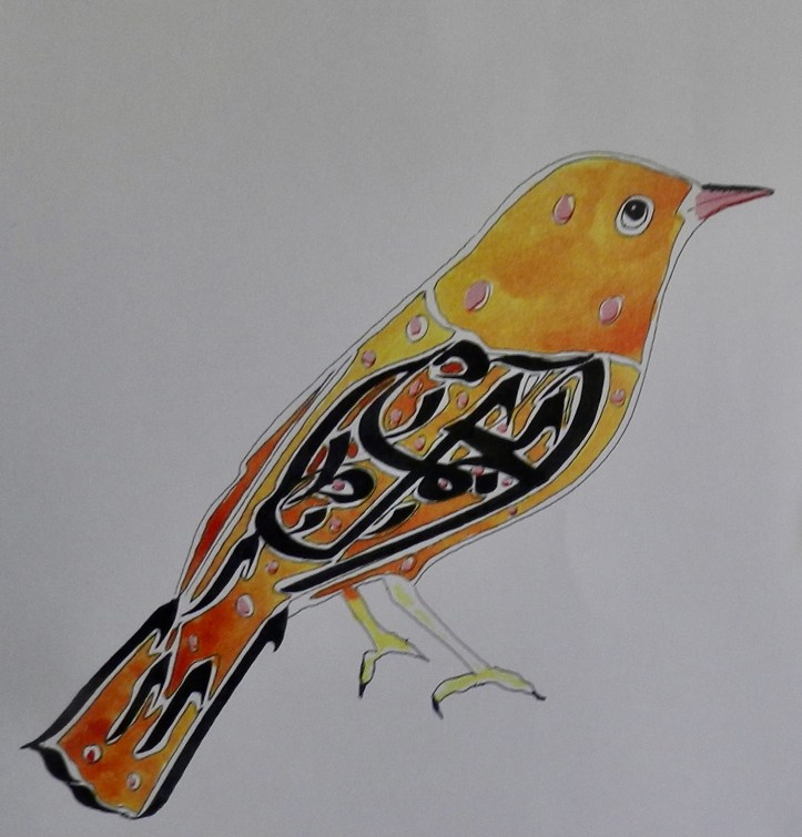 (L’oiseau-beauté de la Conférence des oiseaux, en calligraphie arabe – The bird “beauty” from the Conference of Birds, in Arabic calligraphy)