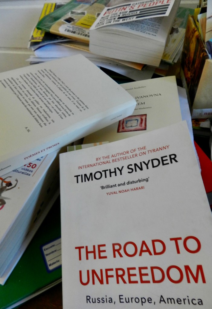 It is now 7:15 AM. I’ll sleep later. I’ve done the rounds of the newspapers; André Markowicz has just published his column. It deals with the world tipping point; the unbelievable part is how the awareness of this world turn-over is slow to take hold. Like a huge ship that keeps on moving forward even once the power has been shut down. Will it stop – yes ? no ? – before hitting the iceberg ? (Earlier, Deepl suggested three different words for ‘conscience’ in Russian; I don’t know which one is applicable in this case, when speaking of ‘awareness’.)
