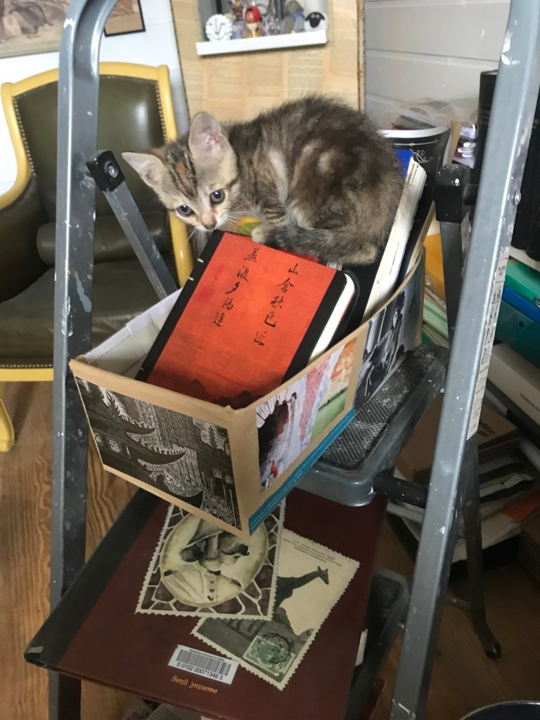 10:45 : the great explorer arrived an hour ago, climbed up the book-laden stepladder. I’ll have to name her after Alexandra David-Néel, the French explorer who entered into Tibet at a time when the region was still out of bounds for Europeans…