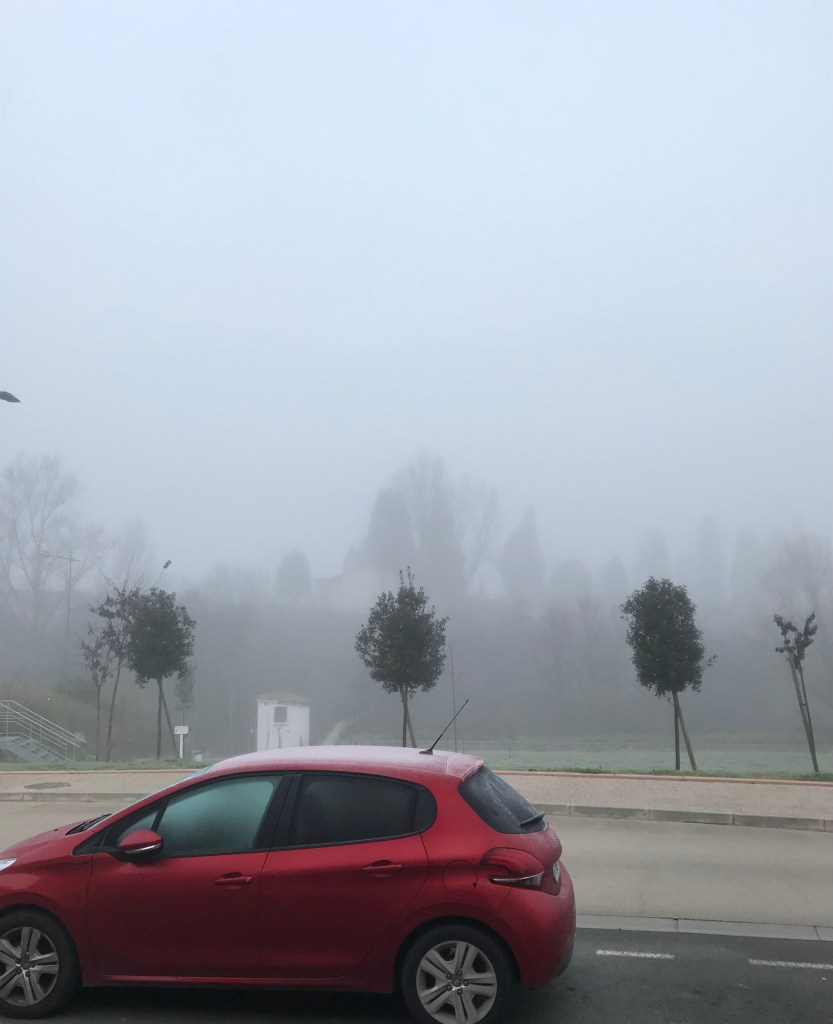 Réveil dans la brume, avec plein de pensées au sujet du chat de l’Horloger, sur le comment et le pourquoi de son nom, Shrödinger l’Immortel (l’Horloger ne sait plus ni prononcer ni ce que veut dire le mot Shrödinger, qu’il prononce Shoding.)