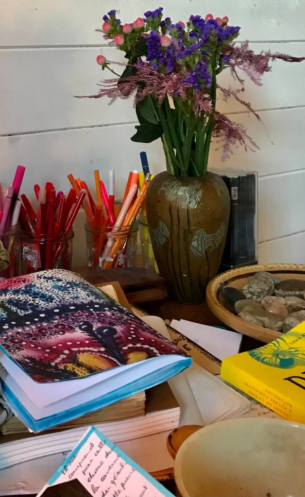 Au réveil, tête pleine de souvenirs ‘culinaires’ de notre mère, si peu douée dans ce domaine, ce qui n’a rien d’étonnant au vu de la conversation-vidéo hier soir avec ma fille, en train d’écrire certains des moments les plus pénibles de son enfance. Elle n’est pas douée pour la fiction, me dit-elle, et s’inquiète des réactions de gens qui se reconnaîtraient dans ce qu’elle écrit. Je lui dis qu’il est trop tôt pour s’en faire à ce sujet, l’utilisation d’autres prénoms sera peut-être utile en remplacement mais, d’abord, le plus important est de noter librement ce qu’elle veut dire, ce qu’elle a besoin de dire, le travail d’édition interviendra plus tard.