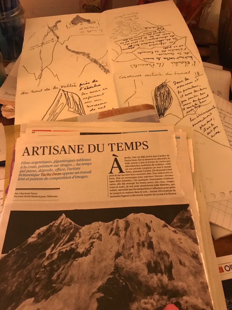 Artonef, last night. No desire to draw, I leaf through art books, images of mountains hold my attention, I use them to scribble out essential elements for eight different scenes in L’Horloger, then I leaf through old Téléramas pulling out pages relative to this tale or about Putin and Ukraine this last because of a video excerpt I saw yesterday where an American, who is known apparently, was querying Zelensky on the costs of a “peace” negotiation and said, with the voice of a unaware child life has spoiled that, of course, forgiving will be difficult but…And Zelensky replies, forgiving ? FORGIVING ? What the…and each of his words resonate in front of this quiet and self-assured unawareness that states the offended one, always, must be the one to forgive the offender. But mostly, mostly, may my quiet life no longer be distrubed by these affairs. From all times, yes? Cain has killed his brother Abel what can we do about it, that’s life, that’s death, be reasonable, please, you are the one accepting that yours be killed off by your refusal to bend to the orders of the criminal.