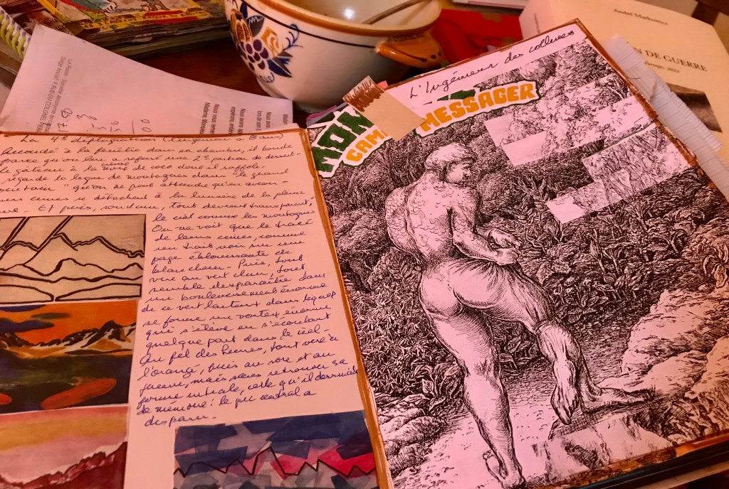 Rêves : elle (?) a parlé avec mépris d’eux, mais, maintenant qu’ils sont les nouveaux maîtres du jeu, elle s’empresse de les qualifier de “héros”; un vieille, très vieille église, massive, avec plusieurs entrées, je demande à une passante de m’en indiquer une, très offusquée, elle me répond que la chrétienté n’est pas accessible à tout le monde; puis en voiture filant à toute vitesse sur une route mouillée quasiment déserte; puis, “l’ingénieur des collines” (le géant) dans L’Horloger des Brumes qui joue avec un objet, dans son geste, on sent le caractère insidieux d’une sorte de résistance.