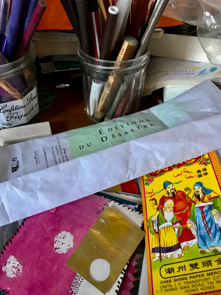 Blue sky, slightly hazy. News, a minefield. Bayrou, the Prime minister as a Little Prince, like in the dream, whereas physically, he has a closer resemblance to Ubu. The lies, like that fake money the Chinese burn at the New Year to apease the dead. (There was some of it last night at Artonef, in an envelop from Editions du Désastre – the funniest part of the name being that it has its head office on the Champs-Elysées in Paris. Disaster as a commercial brand, how amusing – said to a background of cluck-clucks from the cluckers at an apéro. Witty ? You can’t even begin to imagine.)