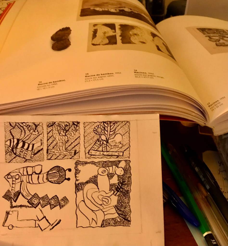 Je n’ai aucune envie de nourrir les jérémiades en boucle à son sujet. Je dessine, je prends des notes manuscrites; besoin énorme de silence.