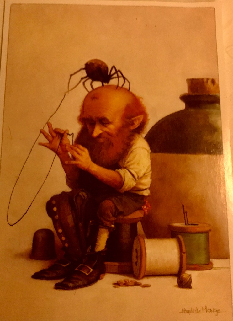 Whatever the case may be, I note on p. 207 of Vie et Moeurs des lutins bretons, (in the section on “evil spirits”), how to get rid of the will-of-the-wisp goblin attempting to send you to your doom by leading you into the river in the middle of the night. Apparently, in order to rid yourself of the Leader Astray, “all you need to do is to open your knife and plant it into the ground in such a way as the blade and the handle form a straight angle” and the Leader Astray will start turning round and round it until the break of day. (But Françoise Morvan’s advice “quicker and more practical for young ladies without a penknife handy, is to reverse any item of clothing, or even her pocket. The goblin, stunned, wil stay there putting questions to himself on the wrong and the right side of things, and his inclination to metaphysical meditation will prove fatal to him.”