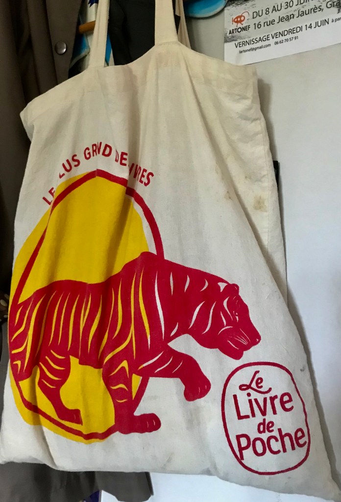 (Prior to yesterday, I hadn’t notice the tiger on the bag I use to carry round my wallet, handkerchief, notebook, ballpoint.)