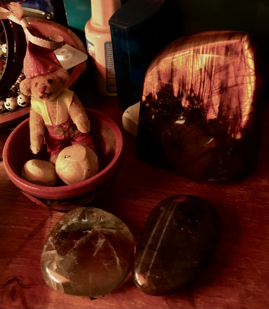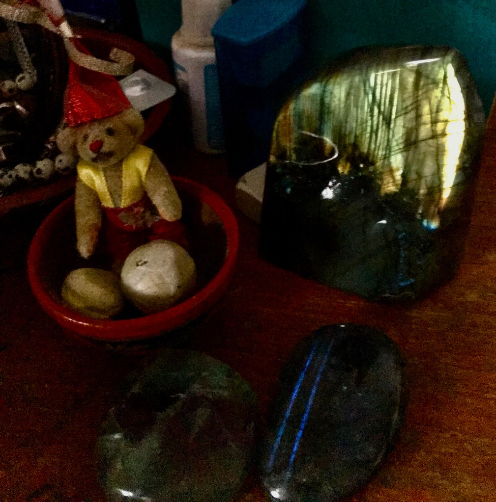 (lumière sur les reflets bleus-verts d’un morceau de labradorite – light on the blue-green reflections on a chunk of labradorite)