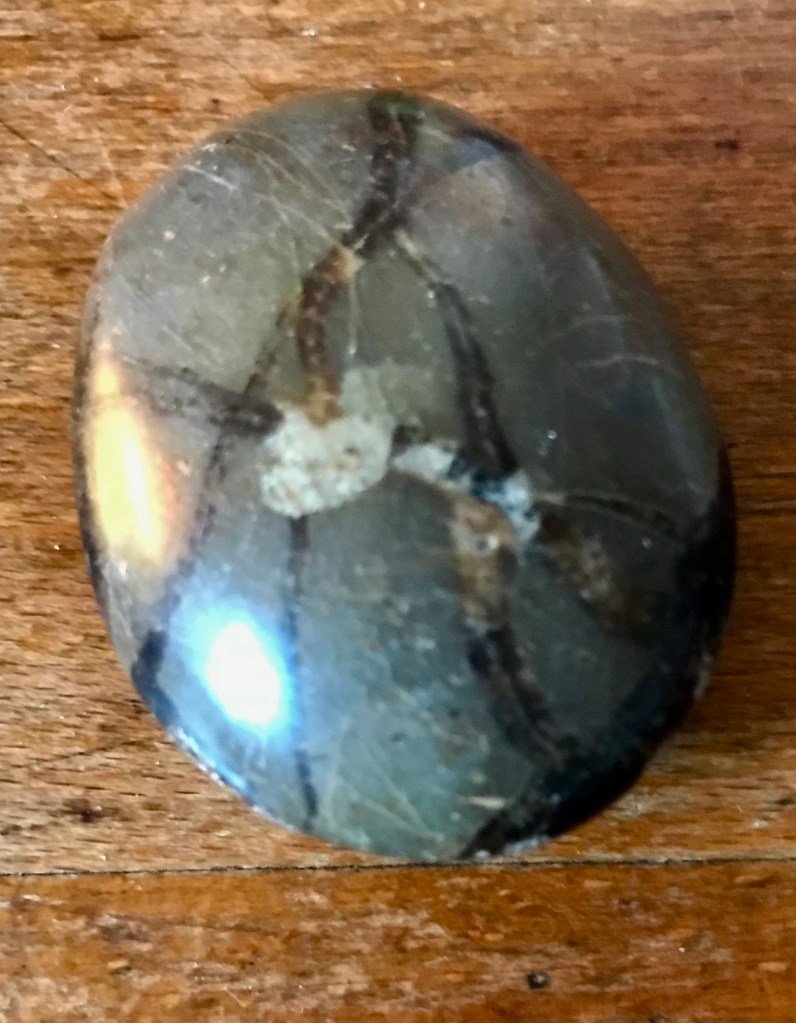 For myself, in the dream, there is only a flat oval stone with rounded edges, dark grey, that breaks in half, to be held in the palms of both hands.